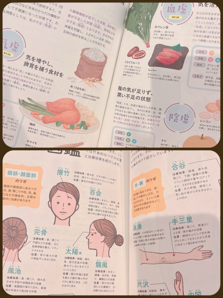 ↑様々な不調に合わせた改善が期待できる食べ物や効果的なツボなどがまとめられています。