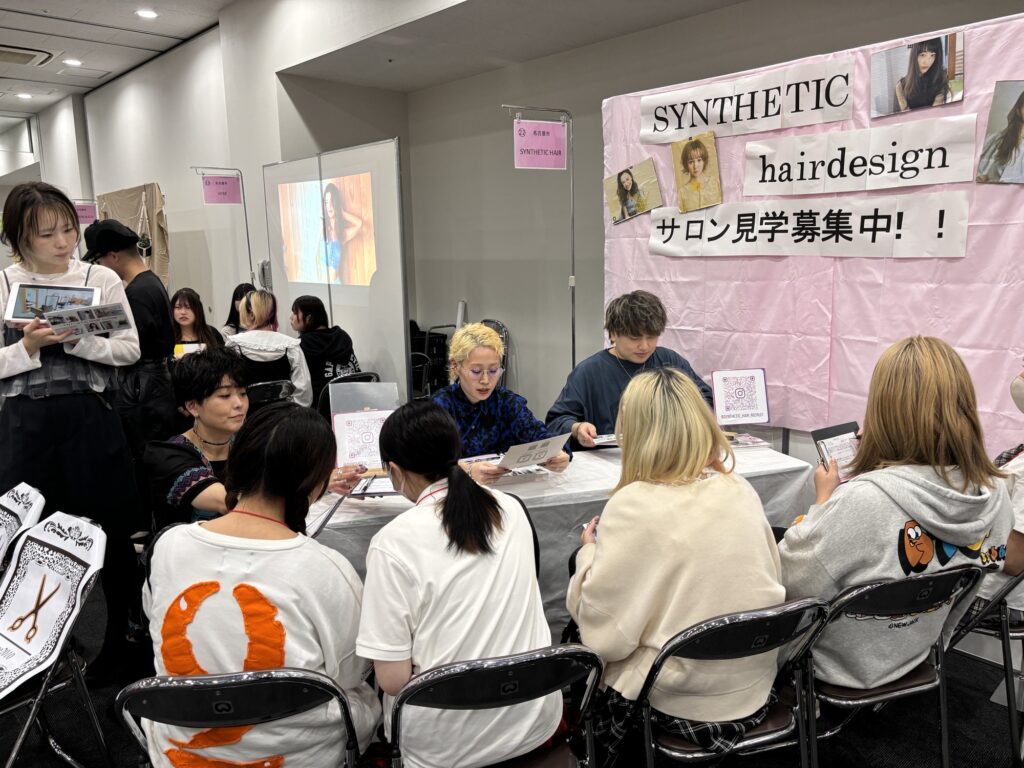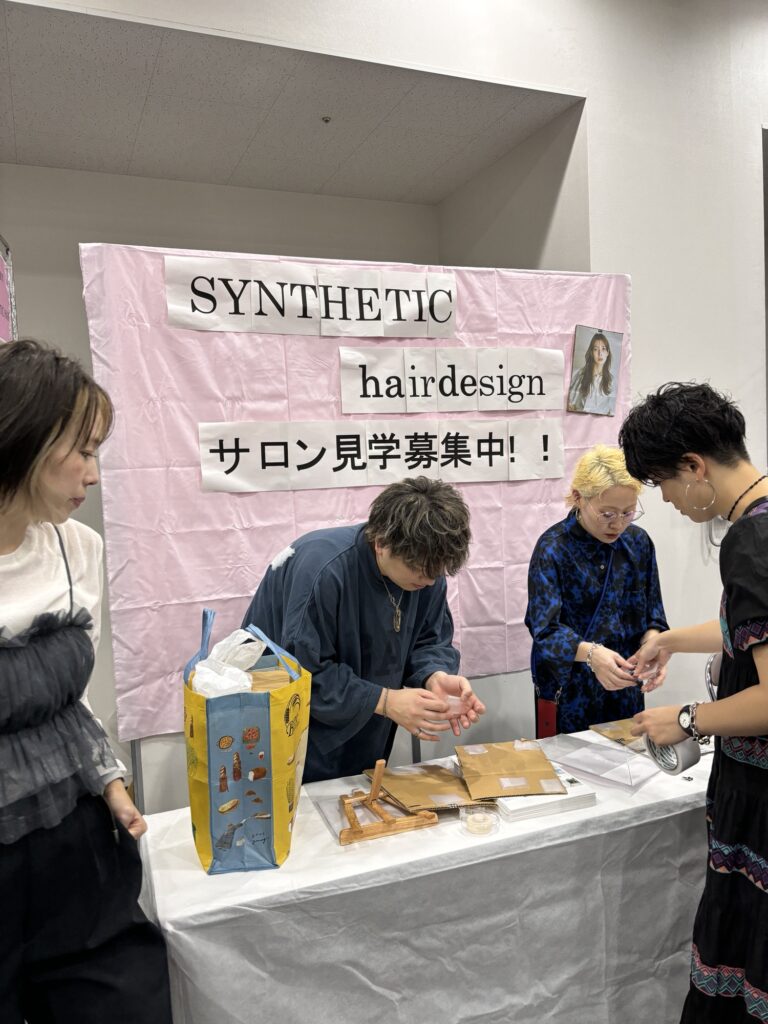 スタッフ数名で参加し、セットを作り、シンセティックの魅力を美容学生さんにたくさんお話しました!