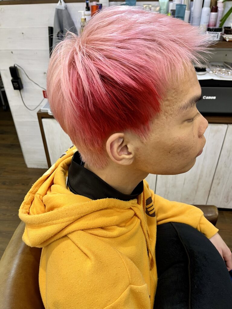 少ないお休みの中ヘアカラーをとても楽しみにしていて下さるお客様 毎回ブリーチをされるのですが、本日はダブルブリーチをしてオンカラーをしたので、5時間ほどかかりました 今回のオーダーは、ホワイトピンクに、レッドメッシュをインナーに添えて です笑 ちなみに前回はビビットオレンジカラーに前髪に紅生姜ピンクを添えて でした 今回はレッド部分を多めに増やして左右で極端に変えてみました☺️ 時間はかかりましたが理想に近づける事ができ嬉しかったです😊