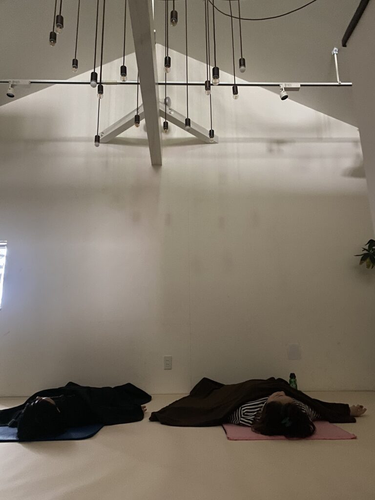 みなさまこんにちはデザイン店藤原ですデザイン店にてお店の定休日にランダムな日にちでヨガ教室を開催する事となりました。 さおりさんのご主人さまが講師の先生で”脳と心と身体の神経をつなげませんか?”いうコンセプトで第一回のレッスン日に私も参加し、1時間のレッスンを受けました! 痛かった腰が緩和され、また明日から頑張れます!!って身体がリセットされ、気持ちの良い体になりました!! また開催日がありますのでどなたもぜひご参加下さい!! 瞑想中気持ちよく寝てます…