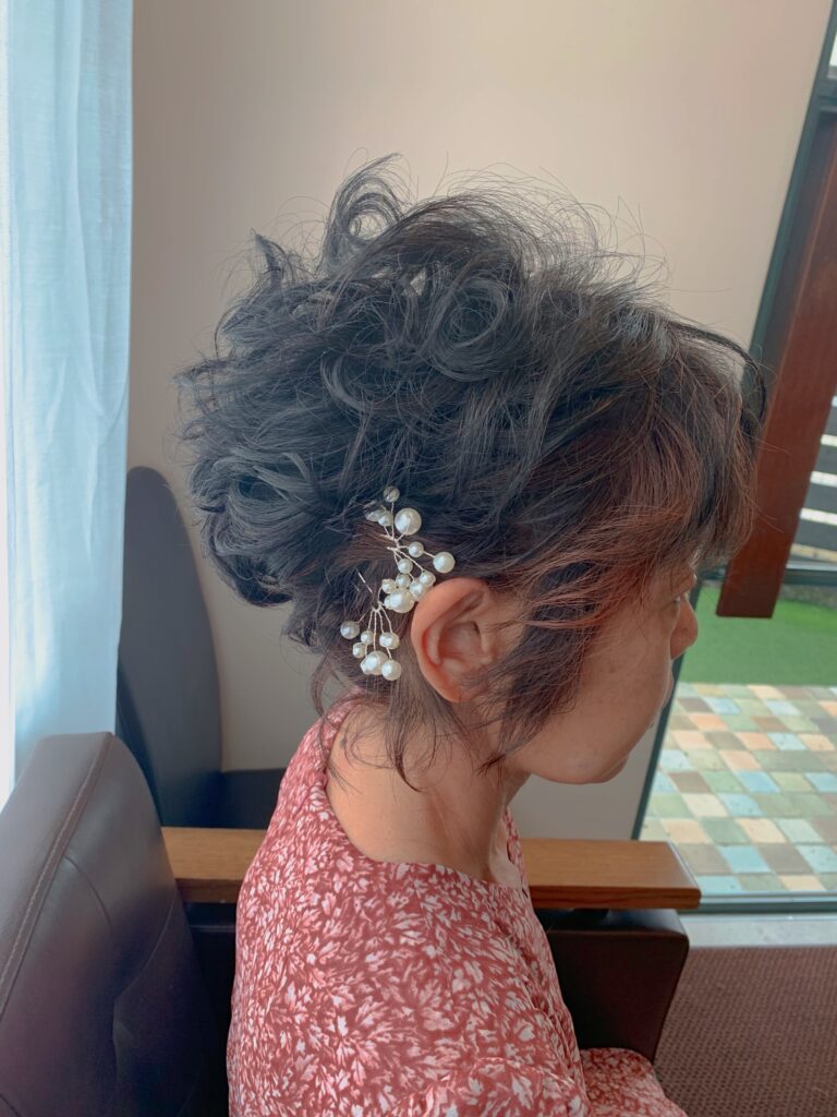 皆さまこんにちは デザイン店のさおりです。 先日、ショートカットスタイルで ミセスのお客様のヘアセットをさせていただきました。 くりくりと巻きまして 華やかに えりあしもあげる事はできましたが、 今回はあえて少し下ろしてみました。 えりあし5㌢ほどあればなんとかあげる事もできます。 コロナ禍も過ぎ パーティやおよばれの機会も増えてきました おめかししてお出かけすると気分もあがります!