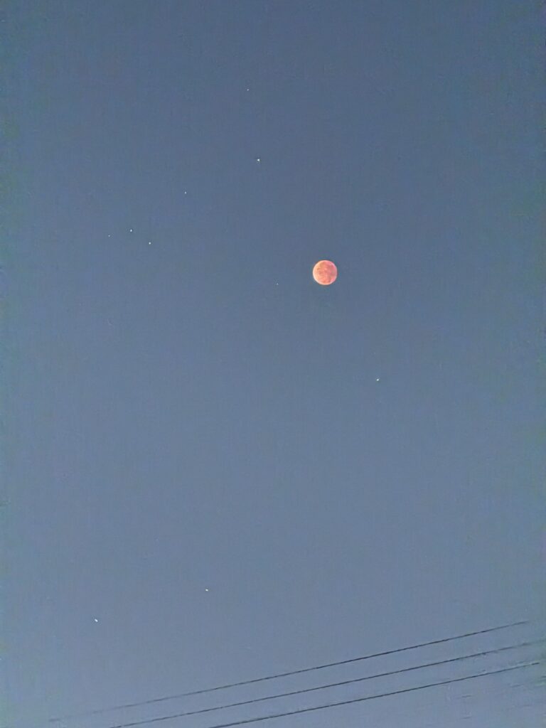 皆さまこんにちは デザイン店のさおりです。 少し前の出来事になりますが、、、 2025年9月8日 月が地球の影で完全に隠れる 皆既月食を夜中起きていたので見ることができました。 地球の大気を通過した赤い光が月に届くことで月が赤銅色に染まります。 日本では3年ぶりの皆既月食だったようです。 写真は撮れませんでしたが流れ星も見れました。 皆既月食 明るい満月 この日は個人的に 忘れられない日になりましたので、生涯覚えていると思います。