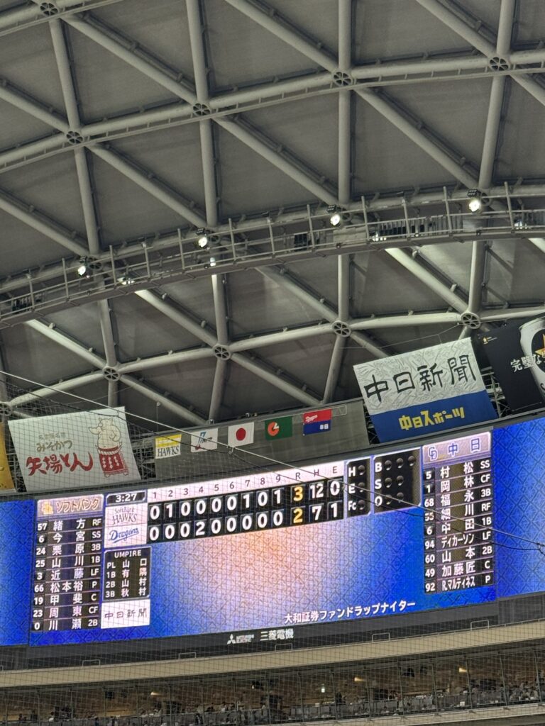 先発は髙橋宏斗、点は取られるもののかなり良い試合展開でしたが惜しくも負けてしまいました🥹